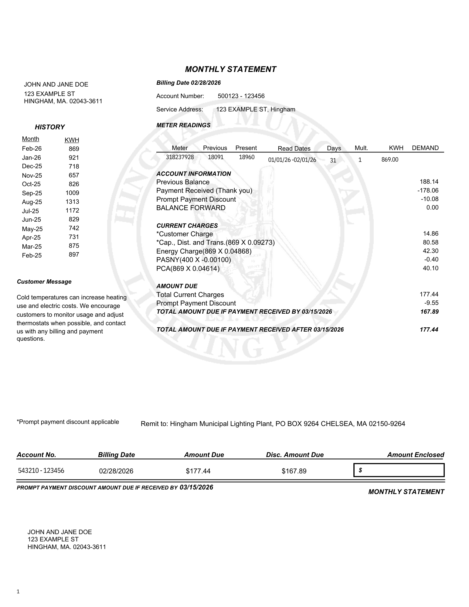 The Energy Charge is based on the Hingham Municipal Lighting Plant’s average monthly cost of energy and may be increased or decreased and may be adjusted in accordance with the Standard Energy Charge.