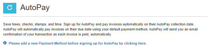 Click on Please add a new Payment Method before signing up for Autopay by clicking here.